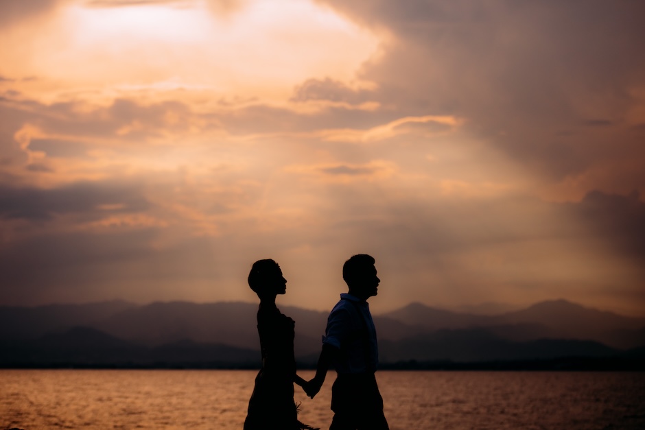 夕日に包まれたロマンチックな写真はとても人気ですが、