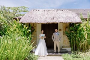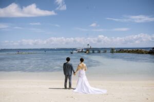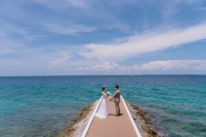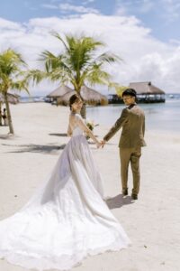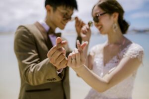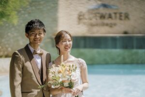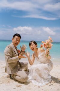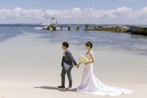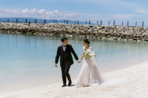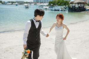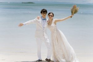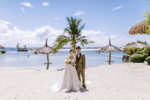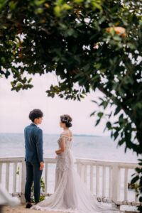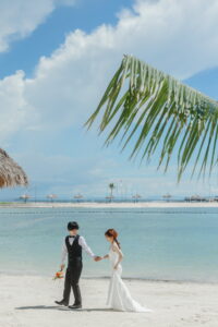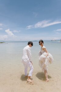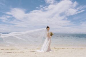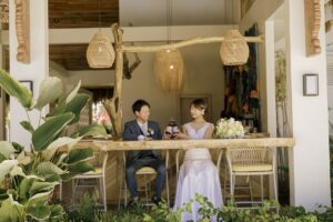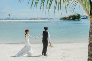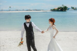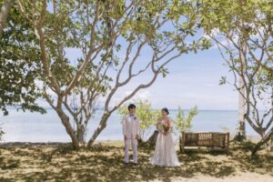 南国感いっぱいのブルーウォーターマリバゴでの撮影はフォトスポットが沢山で時間が足りないくらいです。今回のお客様もいろんなスポットで撮影を行いました。この日はビーチに人が少なくてラッキーな撮影になりました。