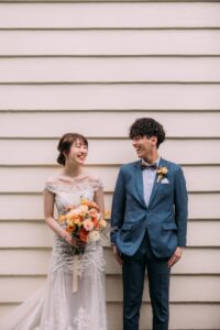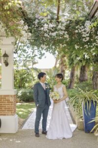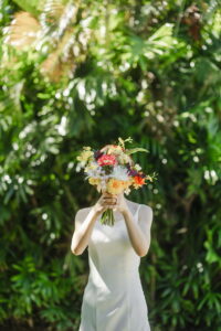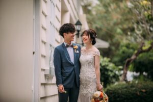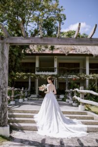ふわっとボリュームのあるドレスでかわいらしい印象のご新婦!ブルーが入ったブーケも印象的です。天気も良く、定番のビーチ撮影はもちろんきれいでしたが、ブーゲンビリアが鮮やかに咲くエリアでの撮影もすごく素敵でした!またセブでお会いできるのを楽しみにしています!