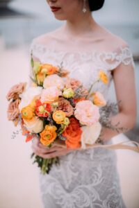プランテーションベイの王道フォトスポットを全てまわって撮影しました!オレンジのブーケはミロバットのプラン内でご用意した生花ブーケです。明るいカラーだけど元気すぎない、きれいめの要素も取り入れた仕上がりになりました。またぜひセブ島へ来てください!お待ちしています。