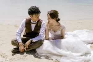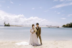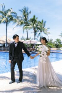 快晴のコスタベラでの撮影は暑かったけどたくさんいい写真が撮れました。前撮りなので日本で使用することも事前にお聞きしていたので使いやすいように意識して撮影を進めていきました