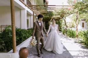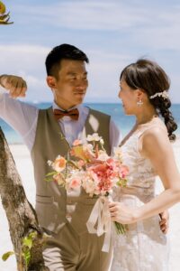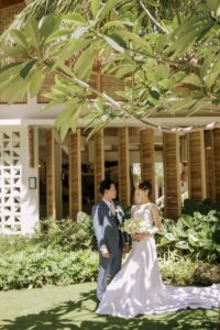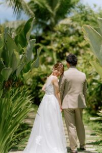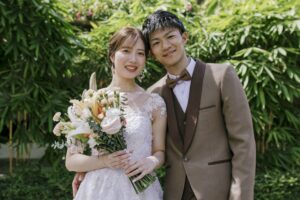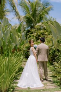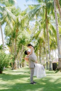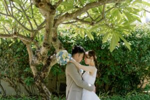 ひとつ前でカオハガン撮影のお写真をご紹介させていただいたおふたり。ビーチはやっぱりカオハガン島メインのため、ホテルではグリーンやガジュマルの木など様々なスポットをまわってバリエーション豊富に撮影しました。スタイルチェンジでカラードレスにチェンジしたので途中からガラッと印象が変わってます。思い出の地となったこのリゾートにぜひまたお越しください!