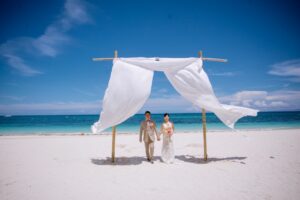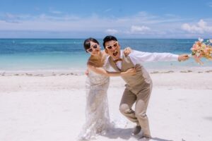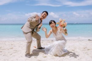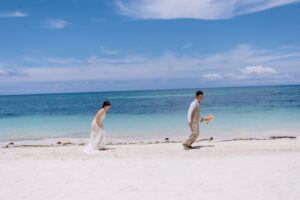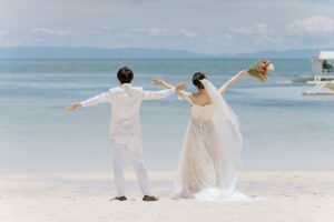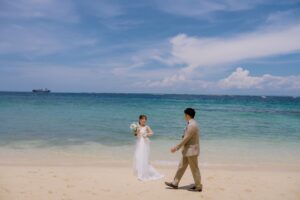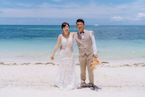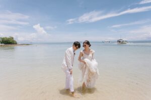 セブ島からフェリーでボホール島へ。セブ本島・マクタン島よりも広く魁皇感あふれるビーチでドローン撮影。スニーカーはお持ち込みで、少しカジュアルな要素が加わりました。おふたりらしさを感じられる素敵なフォトウェディングになりましたね!またぜひセブ島へ来てください!お待ちしています。