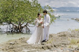 セブ島(マクタン島内)+カオハガン撮影をされたおふたり。ギャラリーではロケーションでふたつに分けてご紹介します!カオハガンでは天気も良く、最高のビーチ撮影となりました!また岩場では雰囲気をガラッと変えた落ち着いた表情も◎この美しい景色を見にぜひまたセブへお越しください!