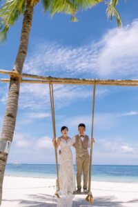 広いビーチが特徴のボホール島でフォトウェディング!リゾート内のグリーンやヤシの木にかかったブランコなど、そこにある素材を最大限に活かした撮影になりました。表情やポージングでスタイリッシュな雰囲気も出しつつ、お二人がリラックスした雰囲気も残すことができました!またお会いできるのを楽しみにしています!