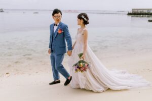 どこまでも続く水平線を背景に、向き合うお二人の柔らかな時間が、